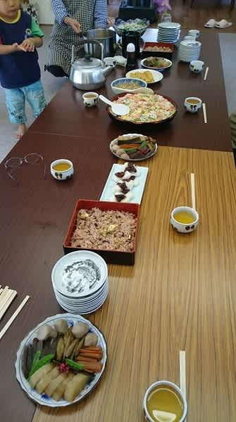 みんなで一品持ち寄りの会食。